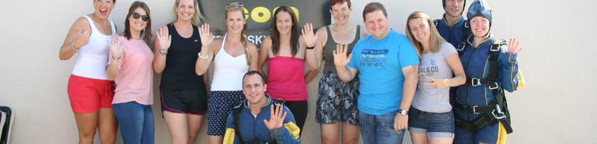 It was a bright summer's day just a few miles from the Devon coast when the Total Body family took to the skies! Climbing to the maximum altitude 15,000ft they jumped from the super-fast Beech aircraft and flew for 60 seconds in free fall before spiralling and floating back down to earth under their beautiful crispy canopies....controlled by the highly skilled Tandem Instructor of course!